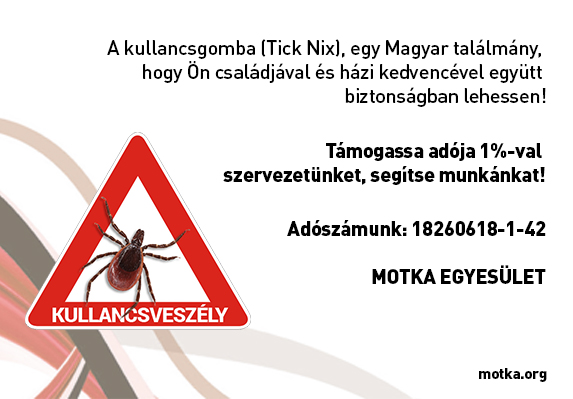 Szervezetünk mindent elkövet annak érdeképen, hogy Dr. Bratek Zoltán és Dr. Bozsik Béla kutatók által kifeljesztett magyar találmány a kullancsgomba –„Tick-Nix” gyártása - a további kutatások mellett - minél hamarabb elindulhasson.