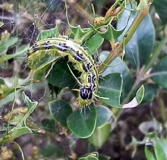 Évente három generációja fejlődik ki. Fő gazdanövénye a bukszus, de a Buxus nemzetség egyéb fajain is előfordulhat. Egy generáció a hőmérséklettől függően két hónap alatt fejlődik ki. Az utolsó lárvanemzedék a vegetációs időszak végén bábbá alakul, amely a lombban rejtőzködve telel át.